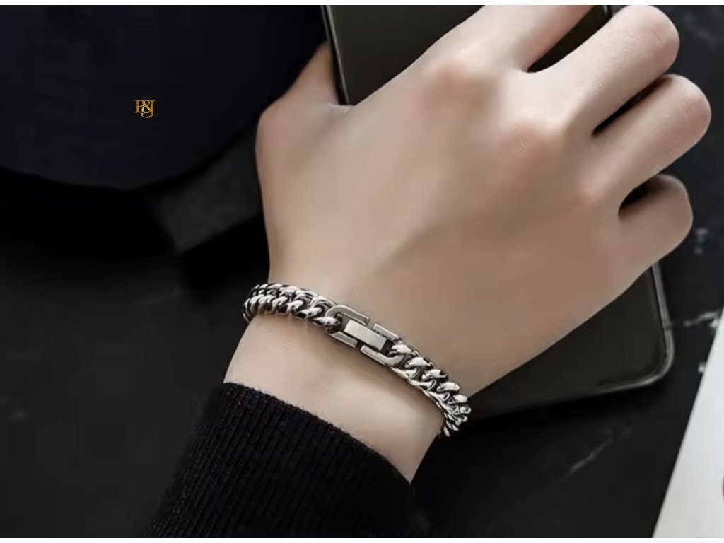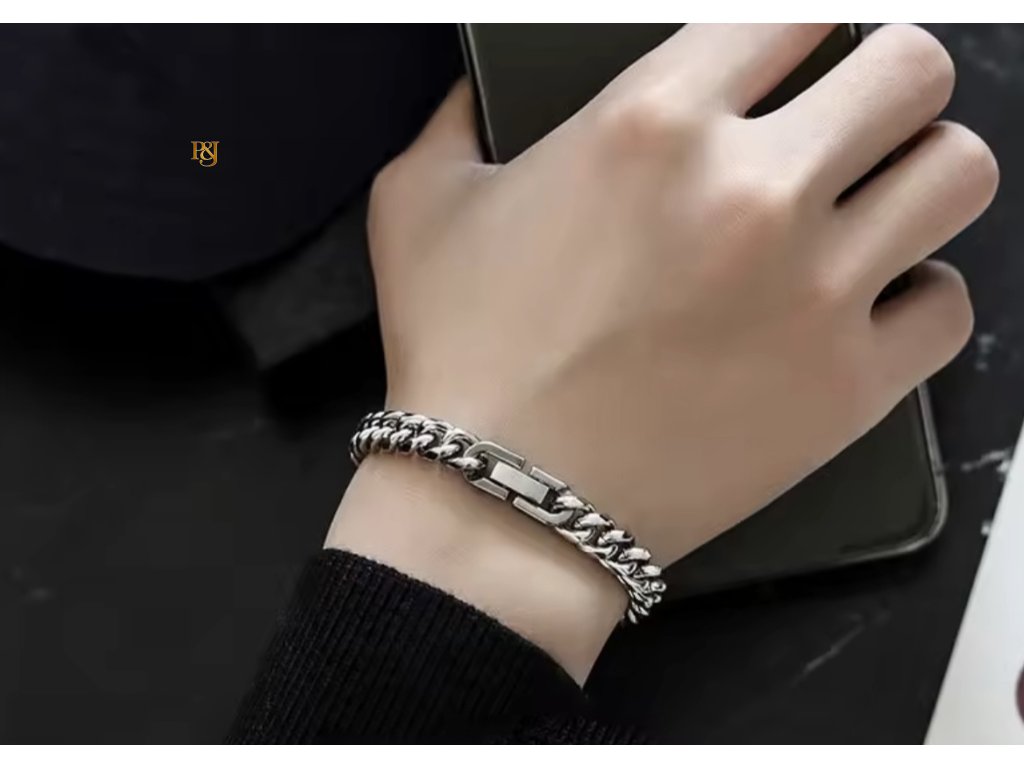Tento náramek je vyroben z kvalitní chirurgické oceli, která je odolná vůči korozi, nevyžaduje častou údržbu a je vhodná i pro citlivou pokožku. Je jeho cílem být diskrétním, ale výrazným doplňkem – hodí se ke košili i ke casual outfitu. Díky svému jemnému, ale stylovému designu pozvedne tvůj vzhled bez přehnané okázalosti.