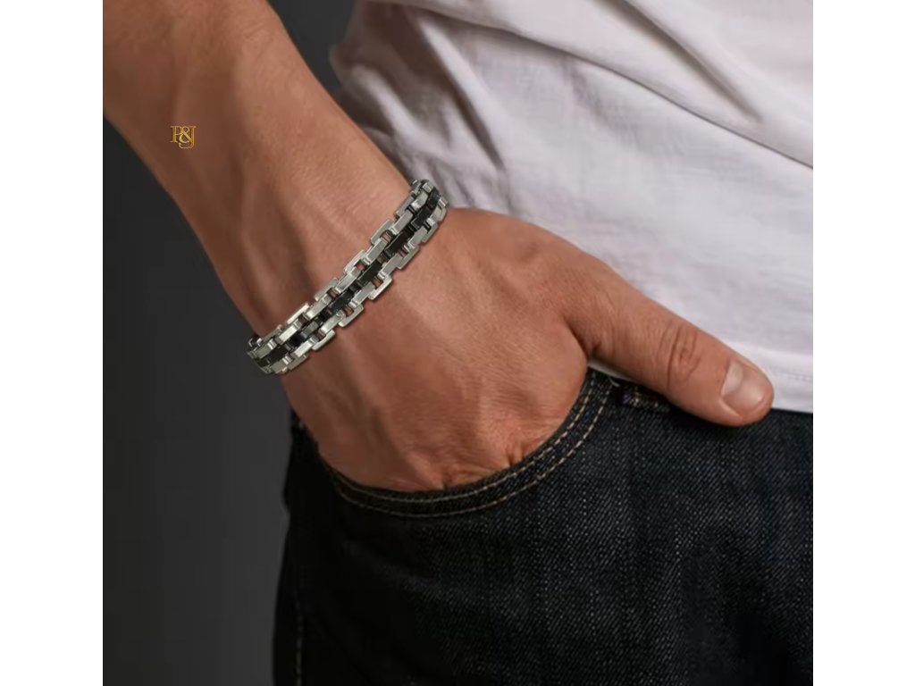 Robustní články dodávají pocit pevnosti, ale zároveň je náramek pohodlný na zápěstí. Zapínání je navrženo tak, aby pevně držel a zároveň umožňoval snadné nasazení a sundání.