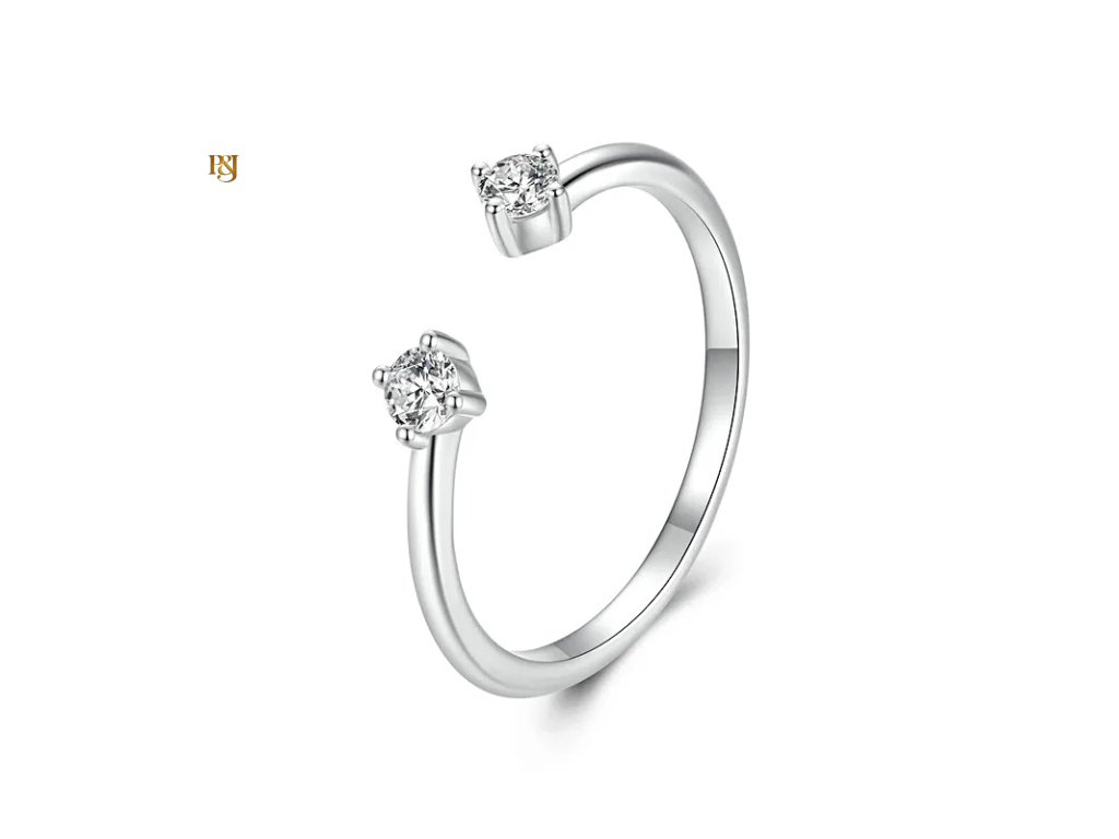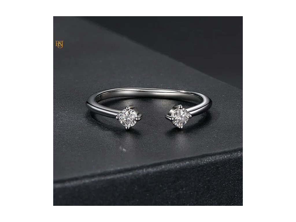 Tento prsten je vytvořen z nejkvalitnějšího stříbra s ryzostí 925/1000, což mu dodává nesrovnatelnou brilanci a trvanlivost. Srdcem prstenu jsou dva nádherné moissanity, každý s moissanitovou váhou 0,1 ct. Tyto drahokamy vynikají svou čistotou VVS1, která je potvrzena certifikátem GDTC, zaručujícím jejich vysokou kvalitu a pravost.