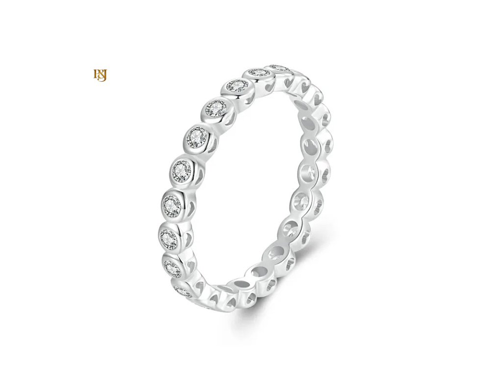 Tento prsten je vyrobený z kvalitního stříbra s ryzostí 925/1000. Je zdobený několika moissanitovými kameny, přičemž každý kámen má karátovou váhu 0,03 ct a čistotu VVS1. Kamínky mají certifikát GDTC, zaručující jejich výjimečnou kvalitu a pravost. Moissanit je známý svou brilancí a ohromujícím třpytem, který nadchne každého.