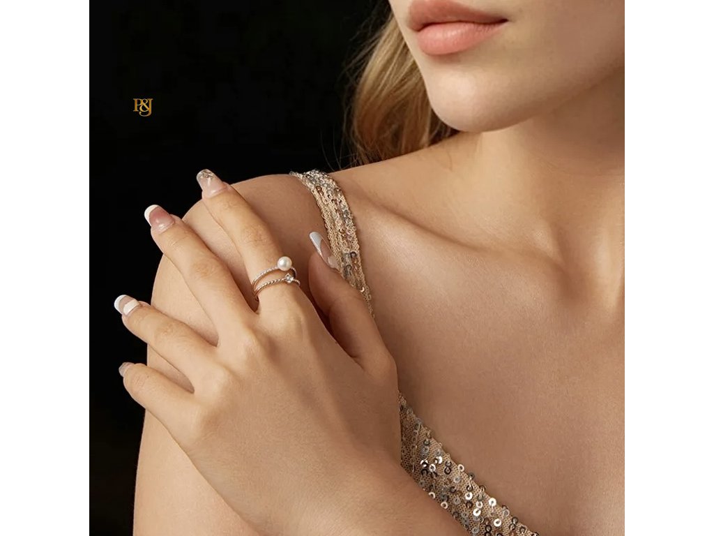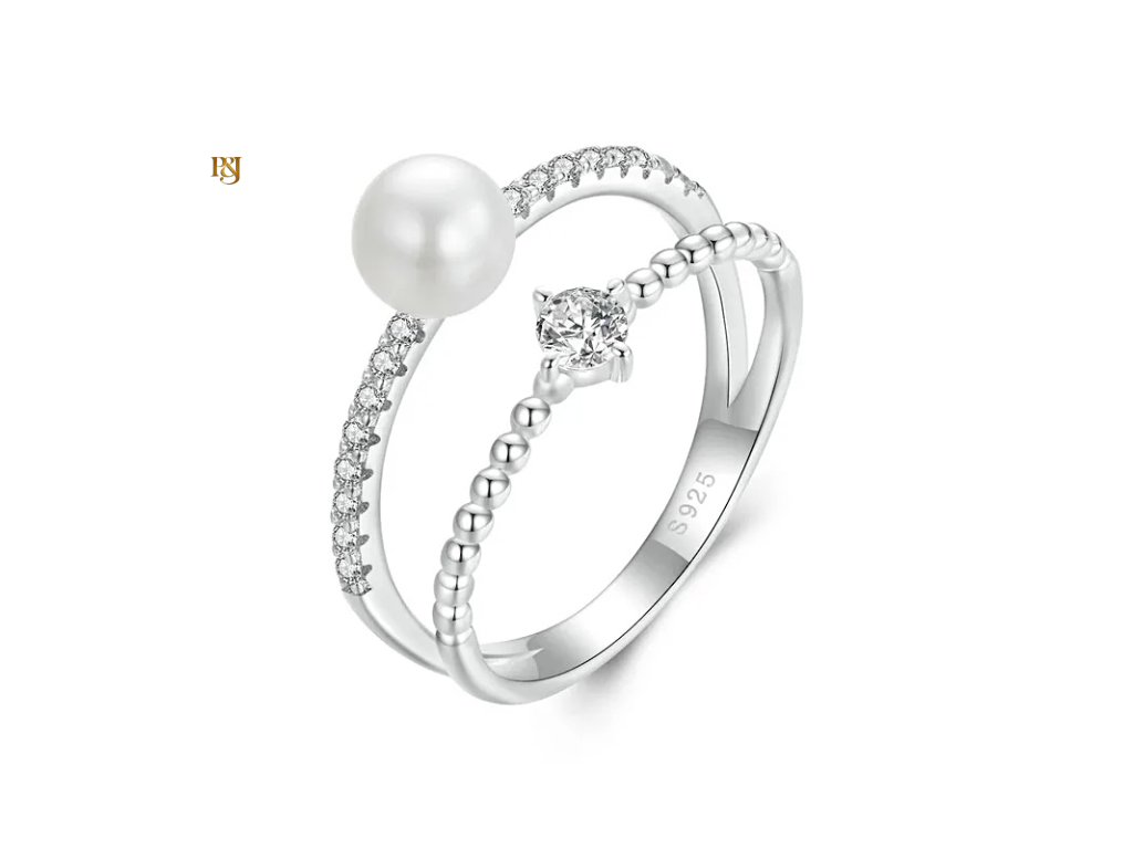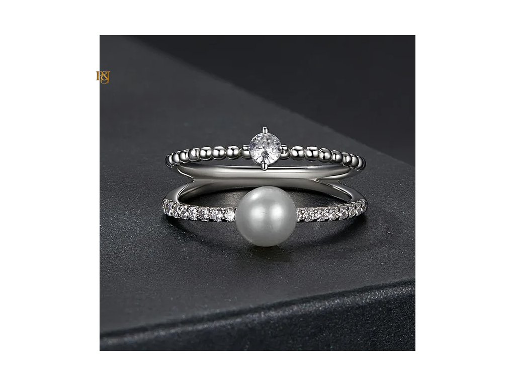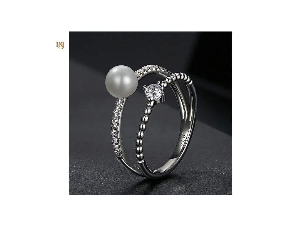 Prsten je dvouřadý, což mu dodává unikátní a zajímavý design. Je ozdoben perlou a moissanitem s karátovou váhou 0,1 ct. Dále je osazen několika malými moissanity s karátovou váhou 0,008 ct, které jen podtrhují jeho jedinečnost a přidávají další jiskru. Moissanity s čistotou VVS1 zajišťují, že prsten bude svítit nezaměnitelným leskem. Přítomnost certifikátu GDTC ověřujícího pravost a kvalitu drahokamů je zárukou dokonalého zpracování a vysoké kvality.