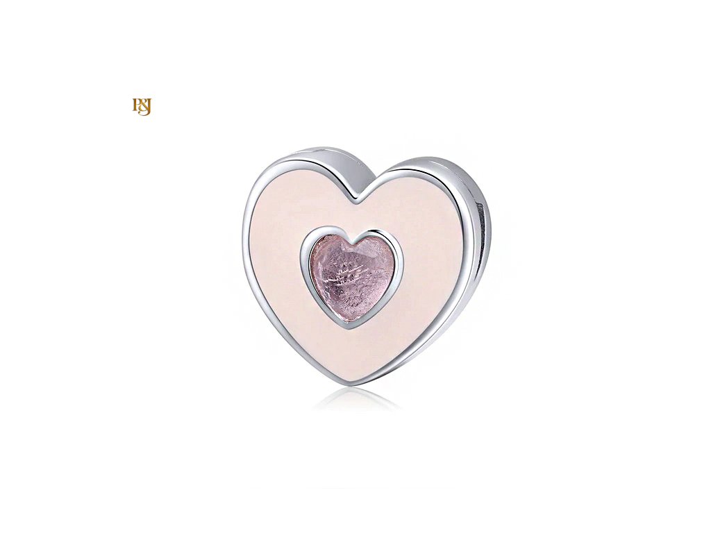 Stříbrný klip Reflexions Růžové srdce RFCH10