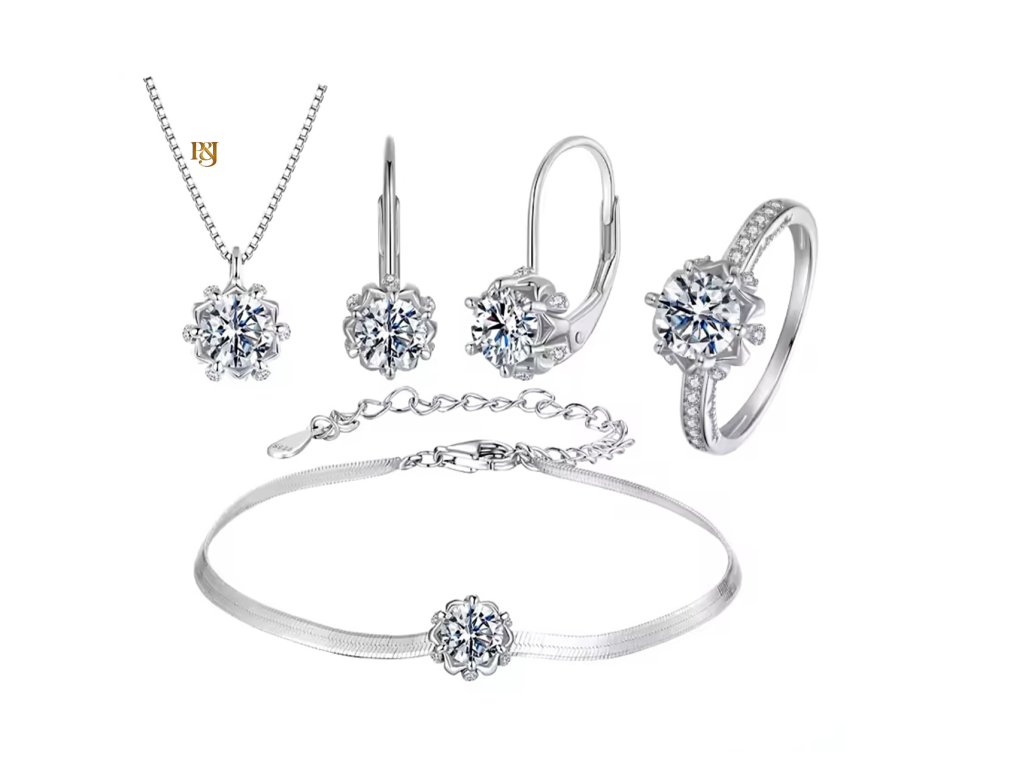 Zažijte výjimečný lesk se stříbrnou mossanitovou sadou šperků Aurora, která ztělesňuje jemnost, eleganci a nadčasovou krásu. Tato čtyřdílná sada ze stříbra 925 je zdobena oslnivými moissanity, jejichž třpyt a čistota připomínají dokonalý diamant.