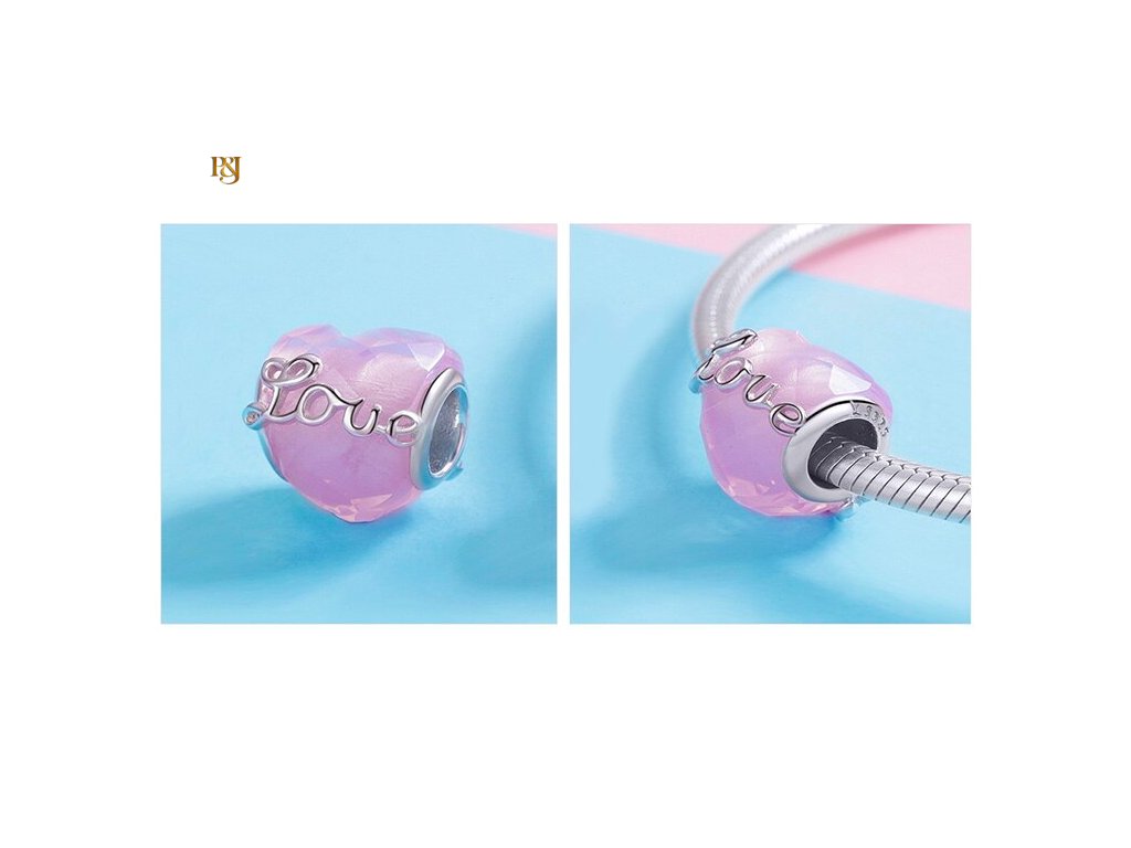 • Stříbrný přívěsek Růžové srdce s nápisem Love je vyrobený ze stříbra s ryzostí 925/1000, osazený broušeným Murano sklem a zdobený stříbrným nápisem Love.