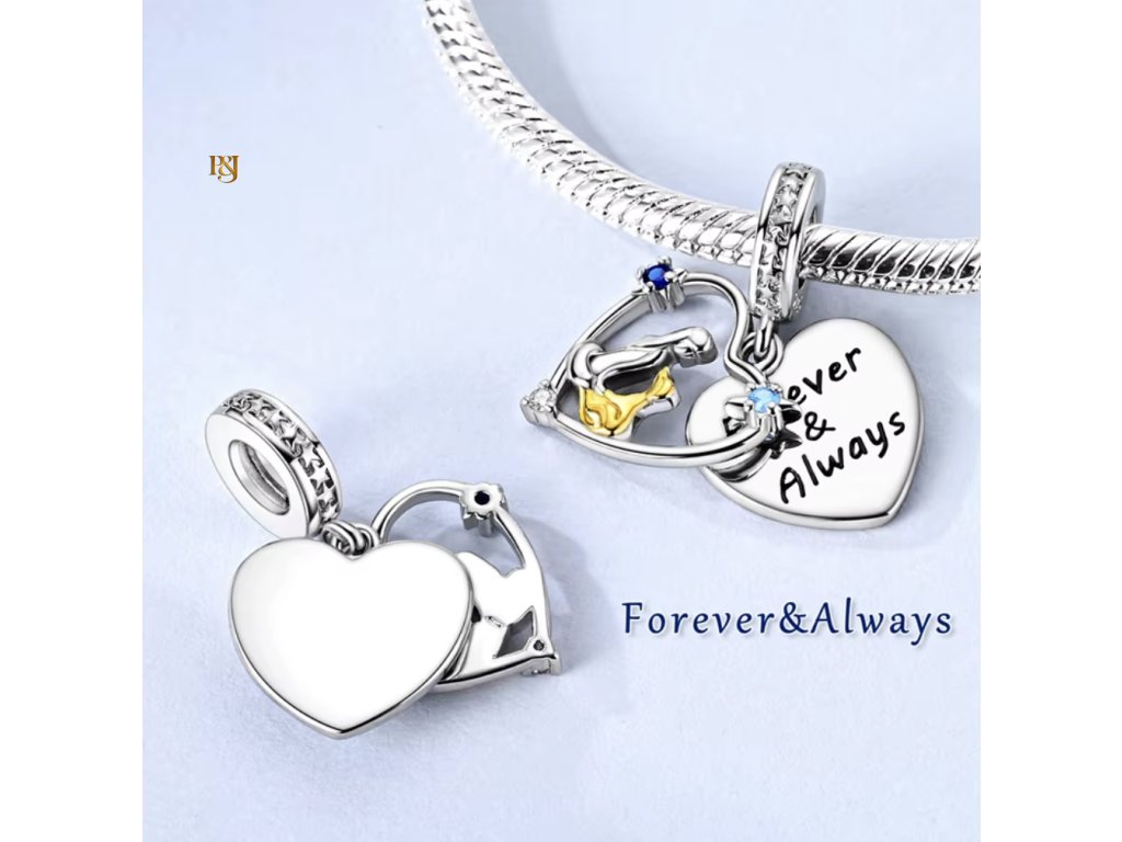 • Otevřené srdce s elegantním klíčem symbolizuje ochotu otevřít své nitro tomu, koho milujeme. Druhé, plné srdce nese vrytý nápis Forever & Always  slib, který nevyžaduje slova, ale nese v sobě emoci, jistotu a oddanost. Jemné kamínky z kubické zirkonie dodávají šperku decentní třpyt, který podtrhuje jeho romantický a nadčasový charakter.