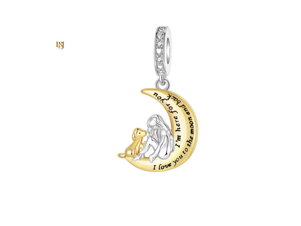 • Visací přívěsek Měsíční objetí zachycuje dojemnou scénu klidu a blízkosti, postavu člověka a pejska sedící společně v náruči měsíce. Tento motiv vyjadřuje bezpečí, porozumění a bezpodmínečnou lásku, která přetrvává bez ohledu na čas.
